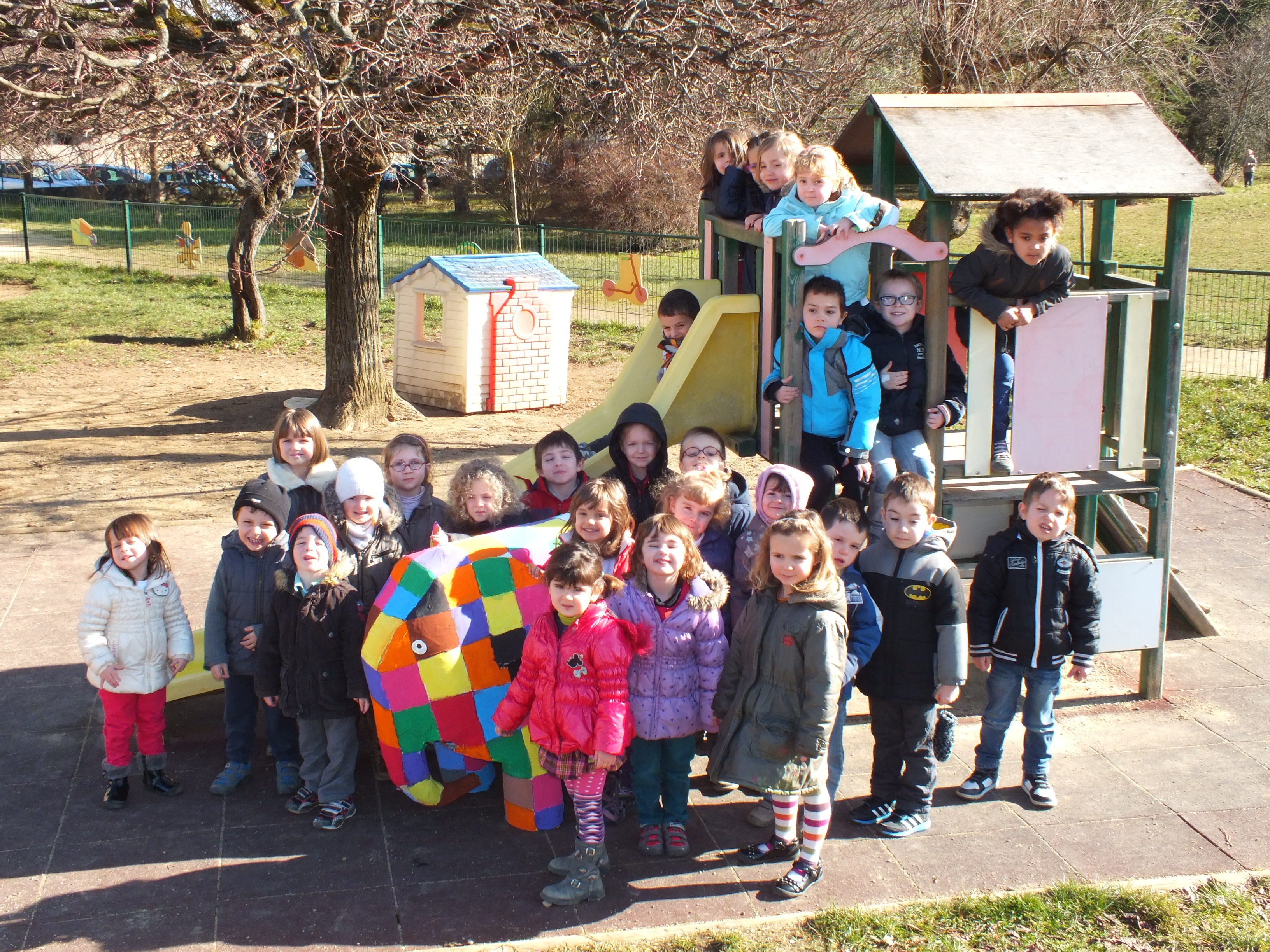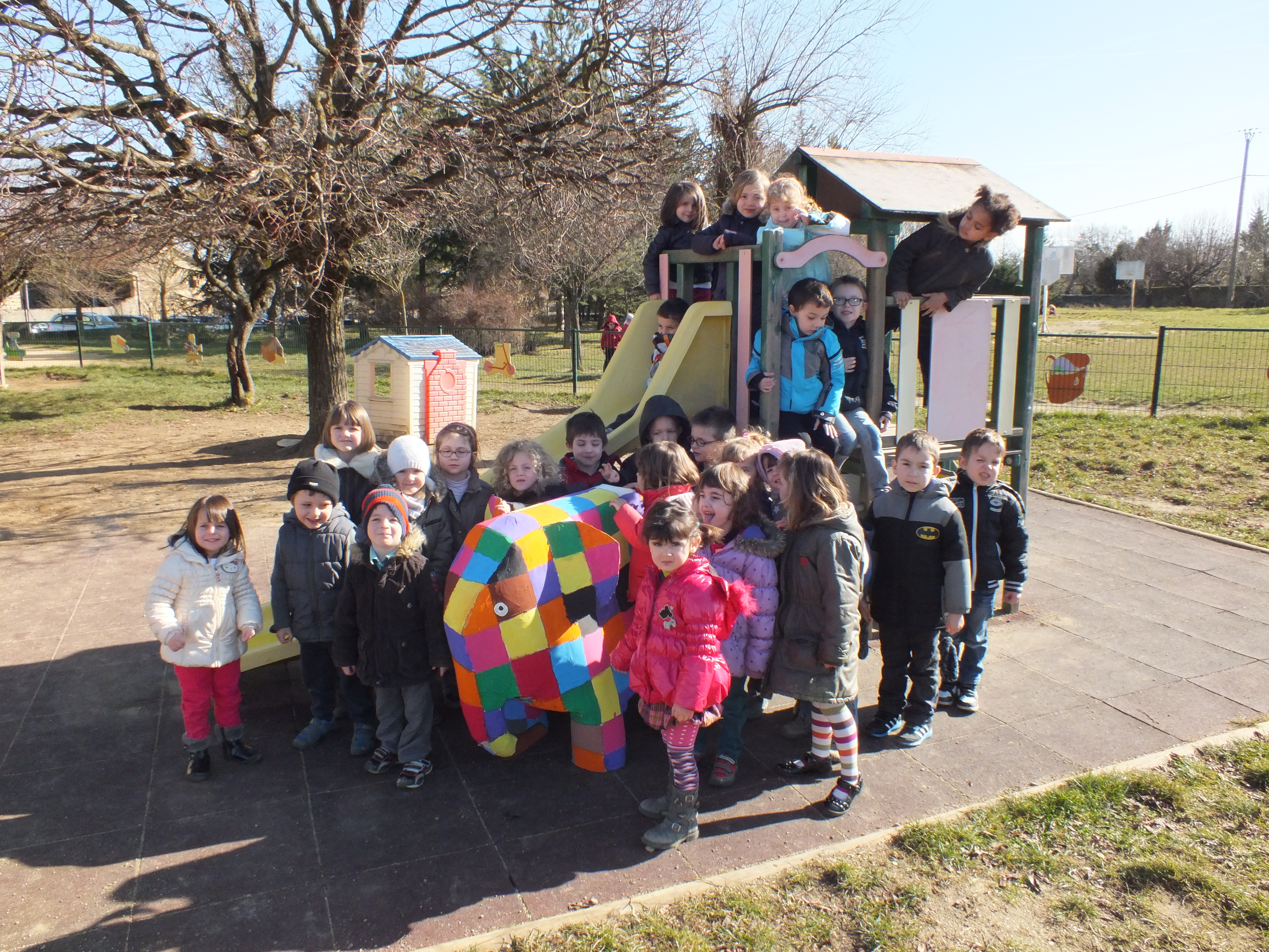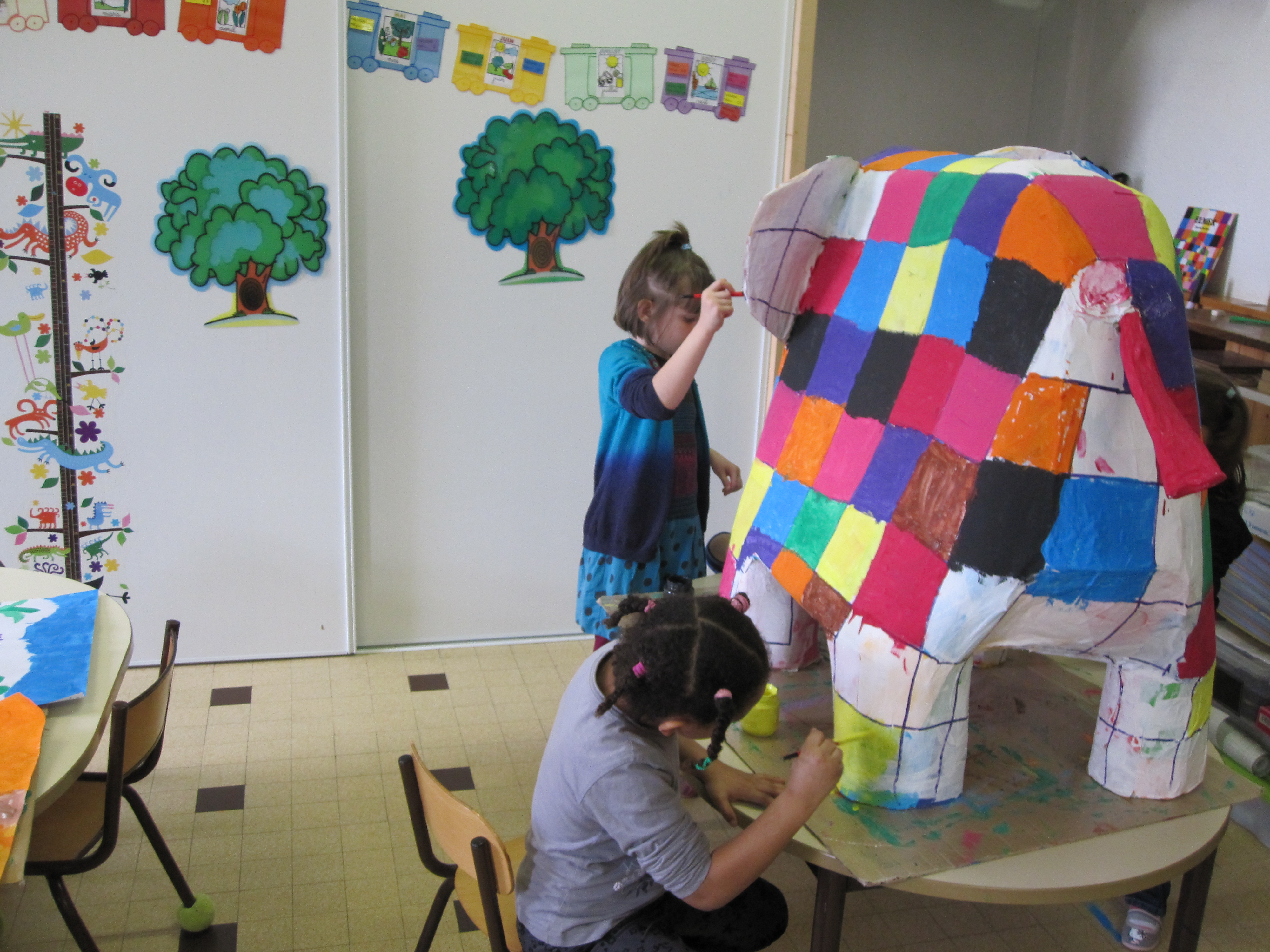 Elmer, l’éléphant bariolé a retrouvé ses belles couleurs lumineuses et en impose dans la classe. N’hésitez pas à venir l’admirer.