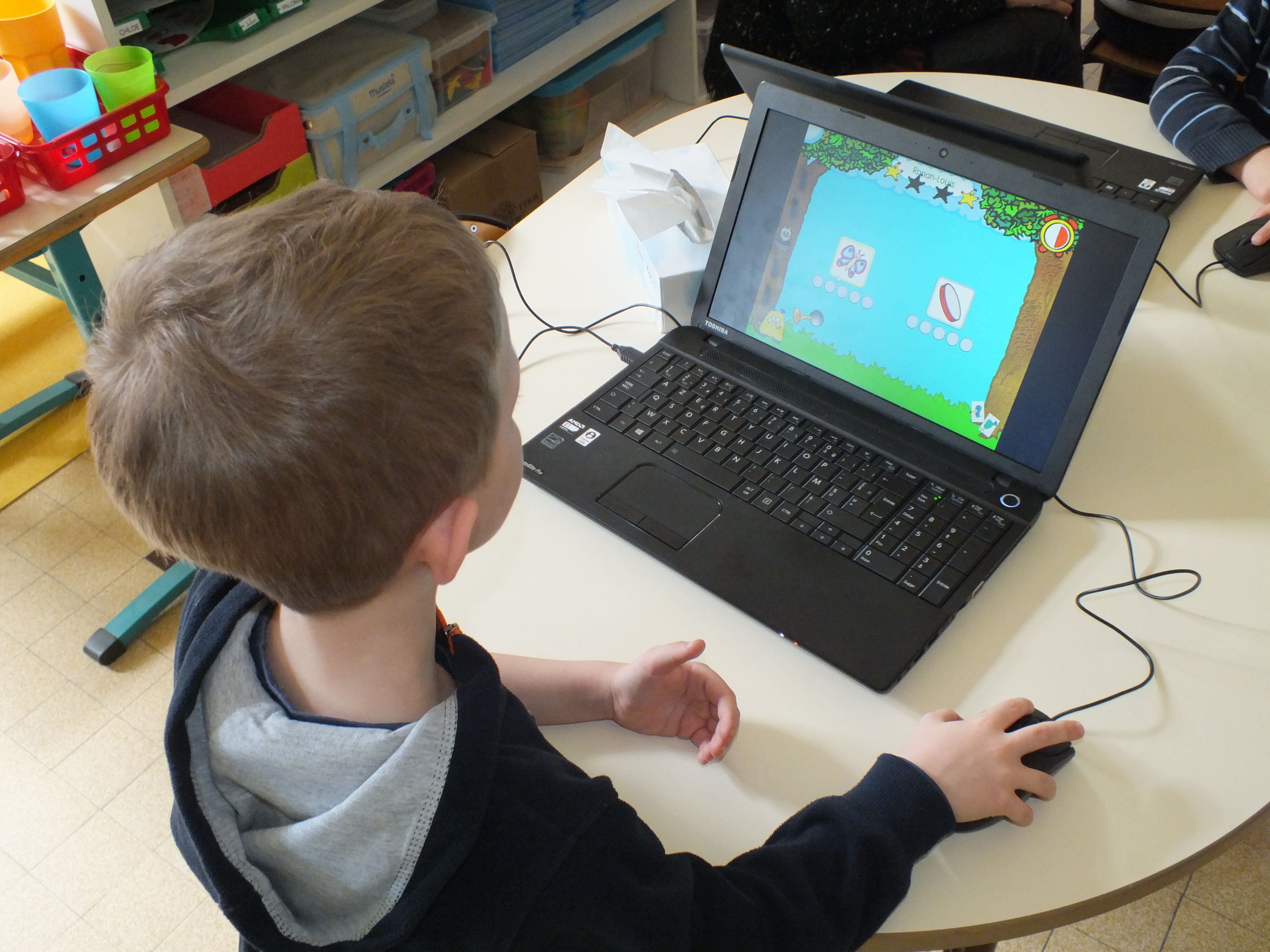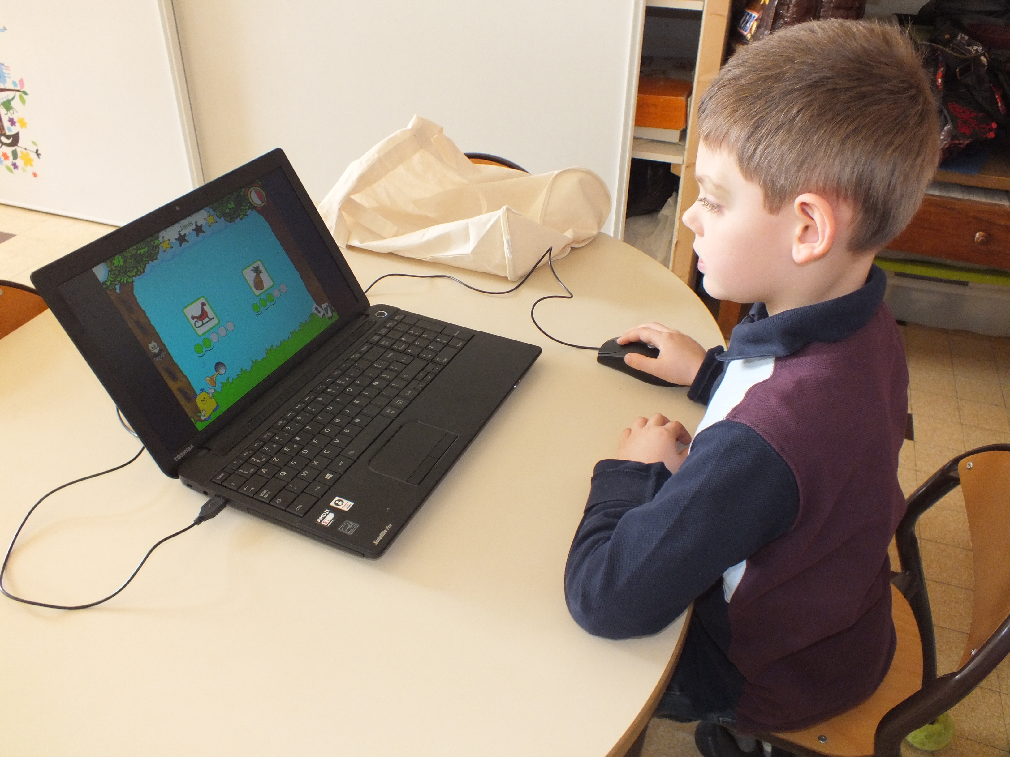 Depuis le début de l’année scolaire, 2 après midi par semaine, les élèves peuvent pratiquer l’ordinateur avec ZOOM afin de jouer avec les lettres et les sons. Un suivi de chacun est réalisée par l’enseignante.