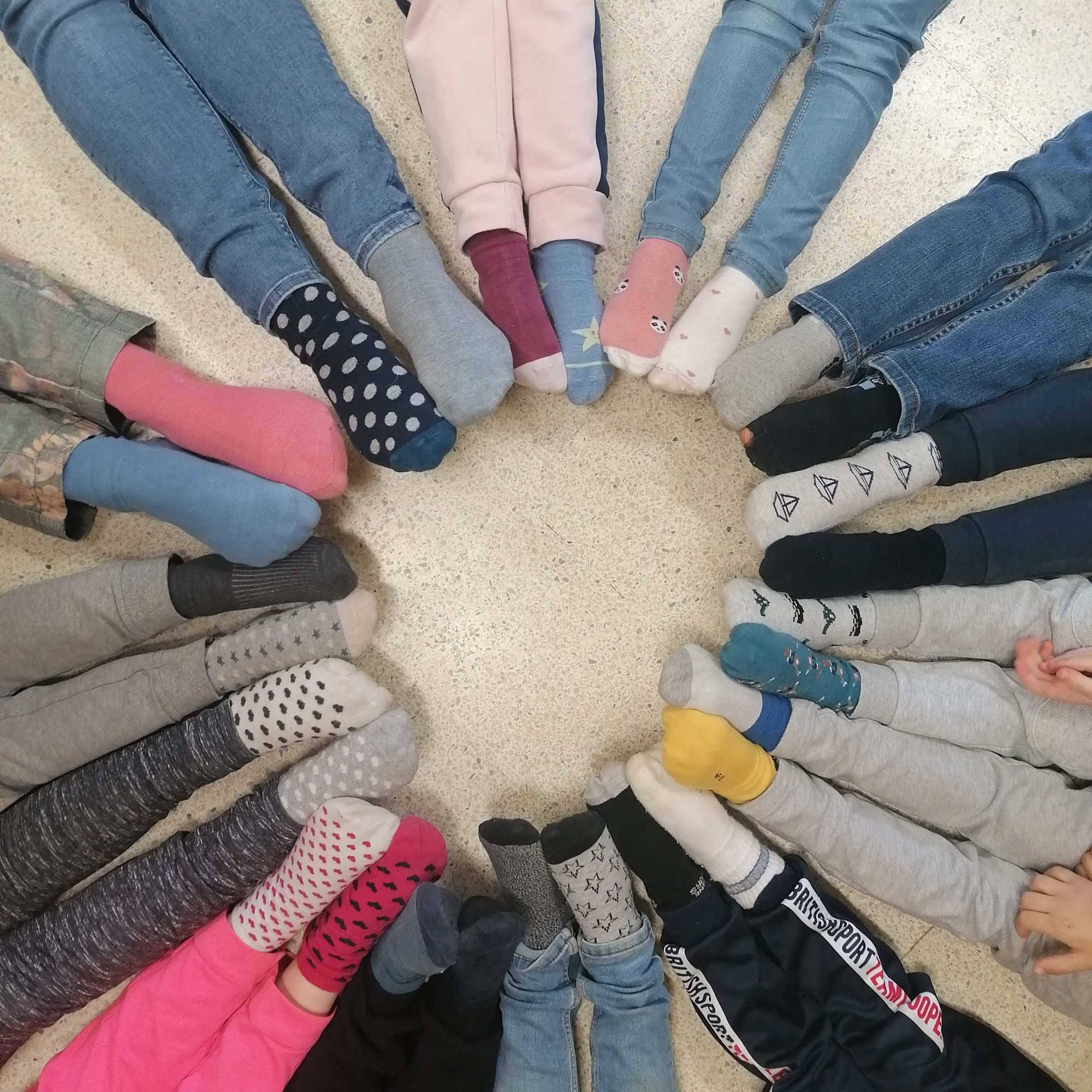 230 élèves de l’école sont inscrits avec autant de différence. Mardi 22 mars, pour marquer encore plus nos différences, les élèves de l’école sont venus avec aux pieds 2 chaussettes différentes. Une occasion de parler des différences, des spécificités de chacun.